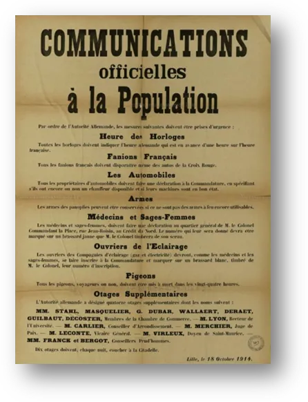Arrivée des allemands. - Occupation, consignes à respecter - Archives municipales de Lille (4H/3/22)