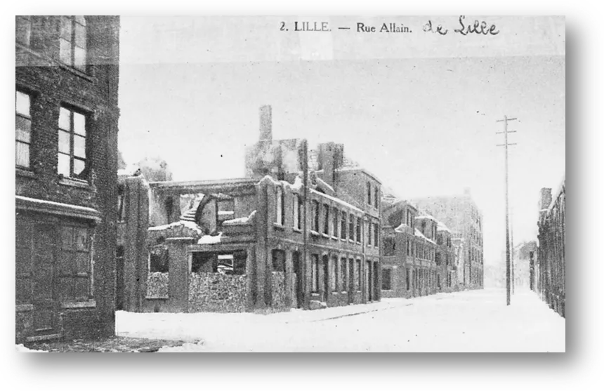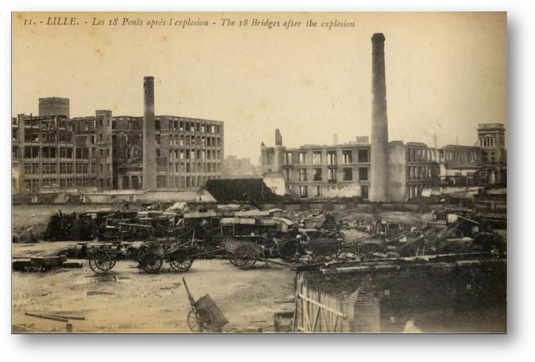 Mes parents qui habitaient Fives et Hellemmes, dans leurs primes jeunesses, se sont souvenus d’un autre détail : non seulement il n’y avait plus de vitres dans leurs maisons, mais celles-ci étaient remplies d’environ 5 cm de poudre brûlée.