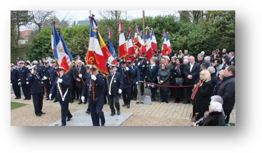 Dans la foule nombreuse on notait la présence de Mme Annie Leys, conseillère départementale, de M. Jean-Louis Laporte, représentant Monsieur le Délégué Militaire départemental, de M. Jacques Garet, président de l’Union des Amicales de Marins et Marins Anciens Combattants du Nord et du Pas-de-Calais, de M Bernard Serpollier, président de la section de Lille de la Fédération Nationale des Officiers Mariniers des Hauts de France, de M. Michel Streck, président de l’Amicale des Anciens Combattants d’Indochine et de Corée. Par ailleurs, MM Marc Desmet, président, et Daniel De Meester, vice-président de l’Amicale des Anciens Marins de la Force Navale Belge avaient fait le déplacement. Dans la foule se trouvaient aussi une partie du Conseil municipal, d’anciens marins et anciens combattants et quelques habitants qui avaient connu la famille Leprêtre avant la tragédie lorsqu’elle habitait au 37 de la rue Edgar Degas.