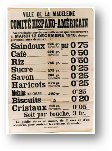 Dans la région lilloise la situation alimentaire est difficile dès le mois d’aout 1914. A Fives une épicerie est saccagée le 1er aout 1914 par un millier de manifestants qui accusent le tenancier d’augmenter ses prix de manière exagérée.
