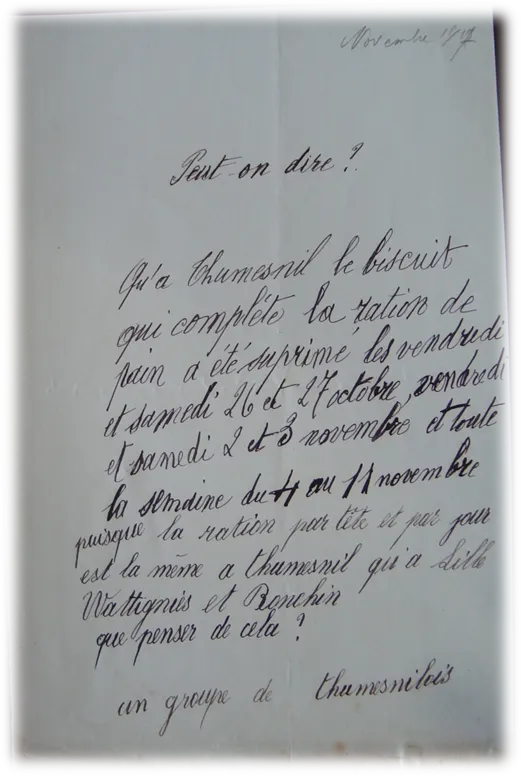 Les réclamations des comités auprès des allemands sont reçues par le Capitaine Bahr. Ses interventions sont bien souvent mises de côté par des officiers d’un grade supérieur. Contrairement aux conventions, les militaires n’hésitent pas à réquisitionner les chevaux du comité local ou à supprimer le laissez-passer du préposé chargé d’aller chercher les denrées au dépôt.