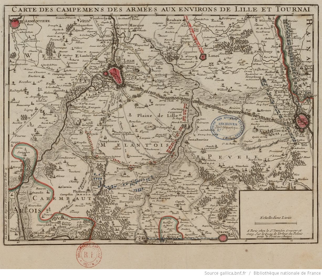 Carte des campements des armées aux environs de Lille et Tournai [ca 1708].