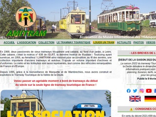 AMITRAM - Site officiel du Tramway Touristique ( 9 visites depuis le 11-04-2007 ) www.amitram.asso.fr - Site officiel du Tramway Touristique de la Vallée de la Deûle. http://www.amitram.asso.fr [ 0 vote, moyenne : 0.00/10 ] Voter pour ce site Commentaires (0) : Voir | Rédiger |