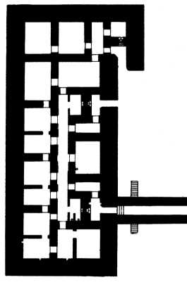 Plan Du SK1 (Sonderkonstruction 1) de Tourcoing comportant trois entrées dont un tunnel menant au sous sol de la villa Six (code Tourcoing 381). Il comporte une douzaine de pièces : locaux techniques, salle des cartes, salle du général, bureaux divers, WC, (collection musée)
