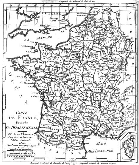 Le 15 janvier 1790, quatre vingt trois départements sont créés aux lieux et places des anciennes provinces. Treize portent des noms de montagne, quatre des noms de situations géographiques et soixante des noms de rivières. Le nombre de ces départements variera au cours des années. En 1801, avec l'annexion de la Belgique, on en comptera cent. En 1810, avec l'annexion d'une partie de l'Italie et de la Hollande, ils seront cent trente. En 1871, les parties non annexées par les Allemands des départements de la Meurthe et de la Moselle formeront la Meurthe et Moselle, alors que le sud du Haut Rhin resté français deviendra le Territoire de Belfort. Plus proche de nous, en 1964, la Seine et la Seine et Oise sont découpées en sept nouveaux départements : Paris, Hauts de Seine, Val de Marne, Seine St Denis, Val d'Oise, Yvelines et Essonne. Certains départements ont aussi changé de noms : la Mayenne et Loire devient le Maine et Loire le 12 décembre 1791, la Charente Inférieure est devenue la Charente Maritime le 4 septembre 1941, la Seine Inférieure devenant la Seine Maritime le 18 janvier 1955. IL semblerait que le terme "inférieure" n'était pas très valorisant. Tout comme l'adjectif "basses" puisque les Basses Pyrénées deviendront les Pyrénées Atlantiques le 10 octobre 1969 et les Basses Alpes les Alpes de Haute Provence le 13 avril 1970. Pour finir, en février 1990, les Côtes du Nord deviennent les Côtes d'Armor. Le Nord, image négative. Rassurez vous, pour l'instant le Nord reste bien le Nord, bien que régulièrement des nouveaux noms soient proposés, le dernier datant de quelques mois préconisait l'appellation de Pays Bas français alors que pour respecter le classement alphabétique il faudrait trouver un nom compris entre la Nièvre (58) et l'Oise (60).