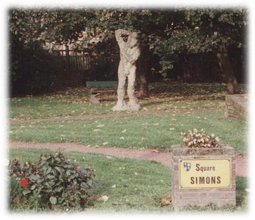 La " PATERNITE " ou encore " L'HOMME A L'ENFANT " date de 1981. Constituée de pierre de Lorraine réduite en poudre et re-mixée avec du ciment blanc, elle est sise dans le square Simons, au coin des rues du Colombier et Jean Jaurès. Ce square a été inauguré le 1er juin 1980 en présence de la fille de l'auteur patoisant. L'œuvre l'a été le 15 mai 1982, l'accord du Conseil municipal datant du 10 juillet 1981. Elle mesure deux mètres vingt sur soixante centimètres. Silviane Léger dira que Simons (ayant préservé la saveur de la langue du terroir) porte la Région sur son dos, d'où s'est imposée l'image d'une paternité implantée dans le lieu de paix d'un square et portant son enfant sur le dos.