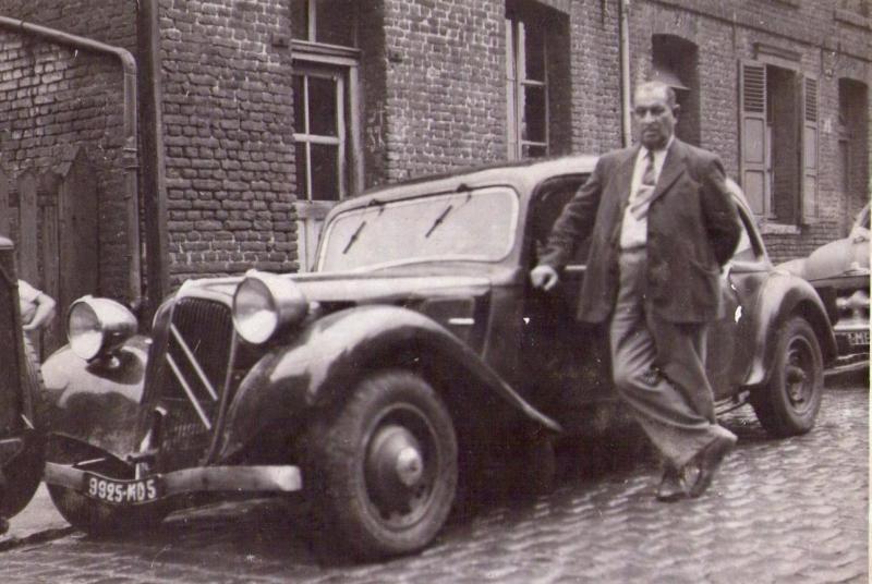 Cette Citroën 11 CV familiale modèle 1939 - 9925MD5 - a été photographiée à Lille. Derrière elle on devine une Ford Vedette, un modèle apparu en 1949 et qui porte l'immatriculation en vigueur avant avril 1950. Ces éléments permettent donc de dater la photographie : entre début 1949 et le printemps 1950.