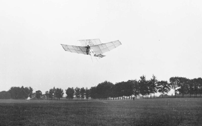 Planeur de première génération (avec dièdre) sur le terrain de Ronchin