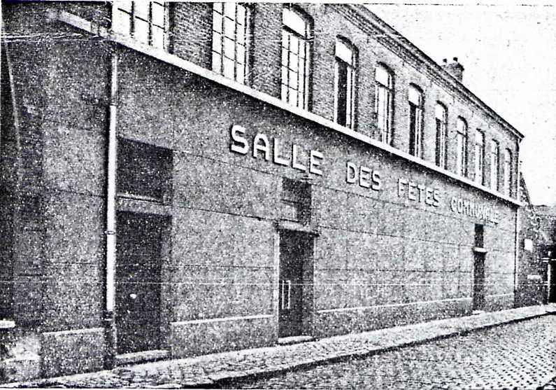 En 1951, le rez-de-chaussée de l’ancienne mairie, rue d’Haubourdin, est aménagé en salle de fêtes communale . L’inscription pompeuse figure d’ailleurs sur la façade. En fait la surface dévolue au public n’est pas bien grande et les lieux serviront de salle de cinéma et pour les enfants des centres de vacances pour lesquels un réfectoire fonctionnera à partir de 1955. C’est en 1954 qu’apparaît la première vraie salle des fêtes de la ville. Elle est construite rue Edouard Vaillant et prendra le nom de Georges Baron en souvenir du président fondateur du comité d’entraide du quartier voisin du Canon d’Or.