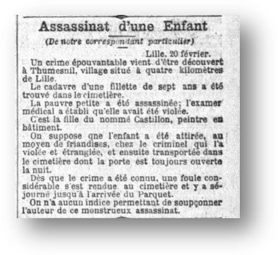 "Un crime épouvantable vient d’être découvert à Thumesnil, village situé à quatre kilomètres de Lille.