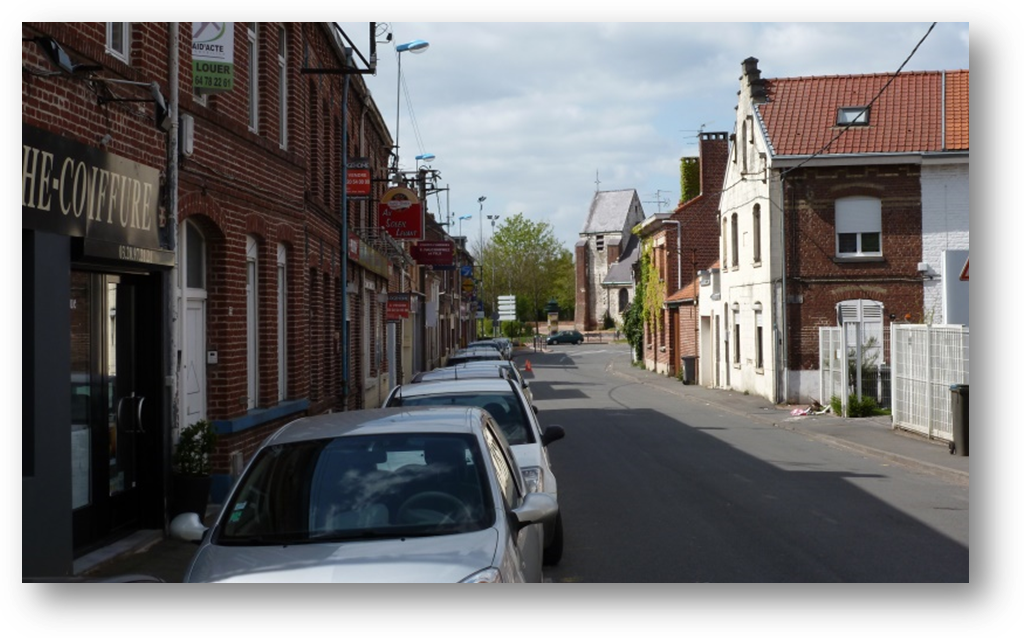 Plus de cent années ont passé. Sur cette photographie prise le 15 avril 2014 sous le même angle, les enfants se sont envolés, remplacés par les automobiles. Les gens n’ont plus le temps de poser. Quelques façades sont facilement reconnaissables, et près de la porte cochère, notre petit commerce, considérablement agrandi qui abrite depuis 1996 le salon de coiffure "Christophe". Ce dernier déménagera en 2015 quelques maisons plus loin (18 rue Henri Barbusse) et laissa la place à "Chloé Beauté" installé précédemment à Thumesnil.