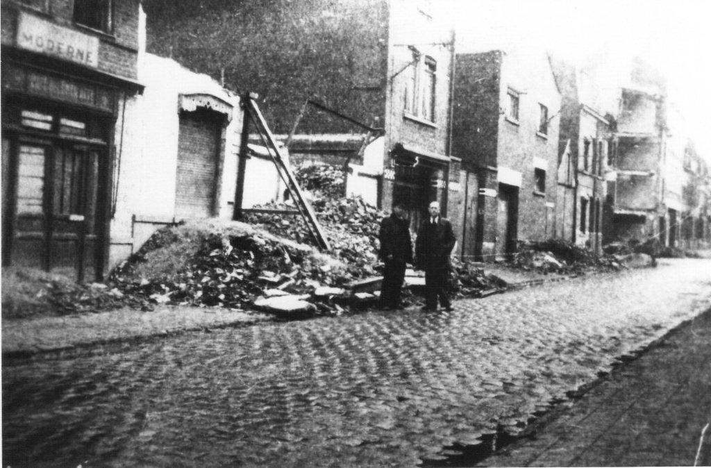 Après le bombardement du 22 juin 1944. A gauche le café de l’Entracte au 23 de la route d’Arras (fonds ACHFT).
