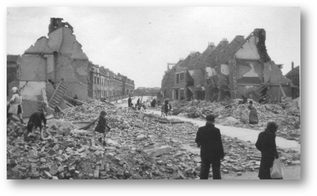 A gauche, dégâts sur Thumesnil après le bombardement du 10 mai 1944 (photo Michel Carré).