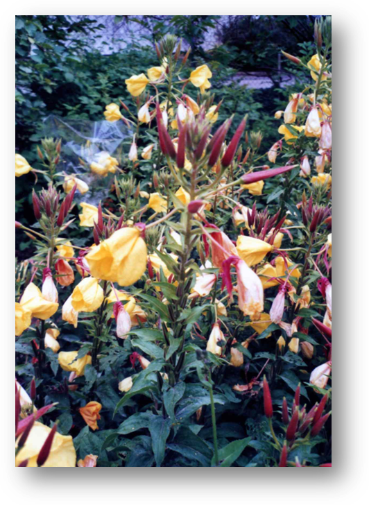 La seconde, l’œnothère aux sépales rouges (Oenothera erythrosepala) fait référence aux sépales striés de rouge.