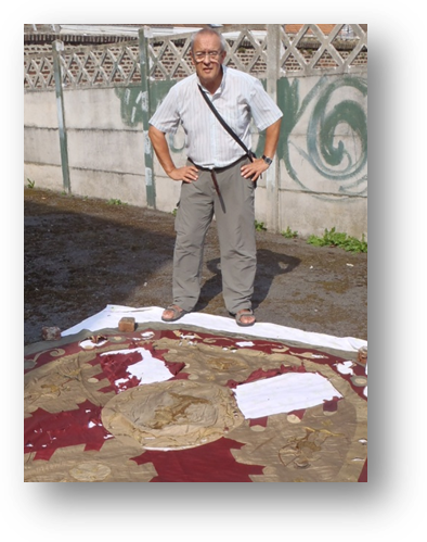 Au début de l’été, M. Daniel Scrive de La Madeleine a remis à l’association culturelle et historique de Faches Thumesnil une bannière de société d’archers de la commune. Mal entreposée, elle présentait un état pour le moins inquiétant. Bruno et Vincent, bénévoles de l’association ont été missionnés pour la dérouler et la photographier. Cela a été effectué le plus délicatement possible dans la cour du local de l’association.