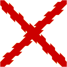 Elle est structurée autour d’une Croix de Bourgogne, une croix de Saint André qui a conservé les nœuds des branches coupées. Ce symbole héraldique est d’origine espagnole. Il figure aussi sur la bannière des arbalétriers de Bondues en 1782, sur la bannière de Wavrin de la même époque, ce qui peut nous conduire à penser que la bannière que nous possédons est une fabrication à l’identique d’un exemplaire détruit dans la tourmente révolutionnaire, peut être celle de la société d’archers érigée à Thumesnil en 1767 chez le sieur Beudart.