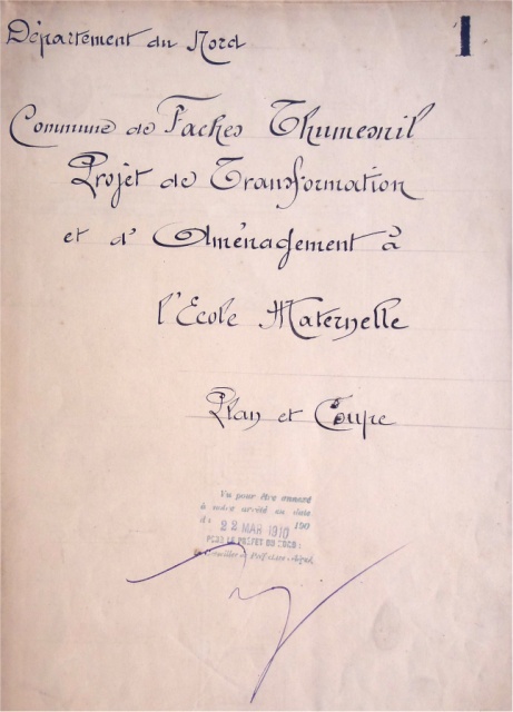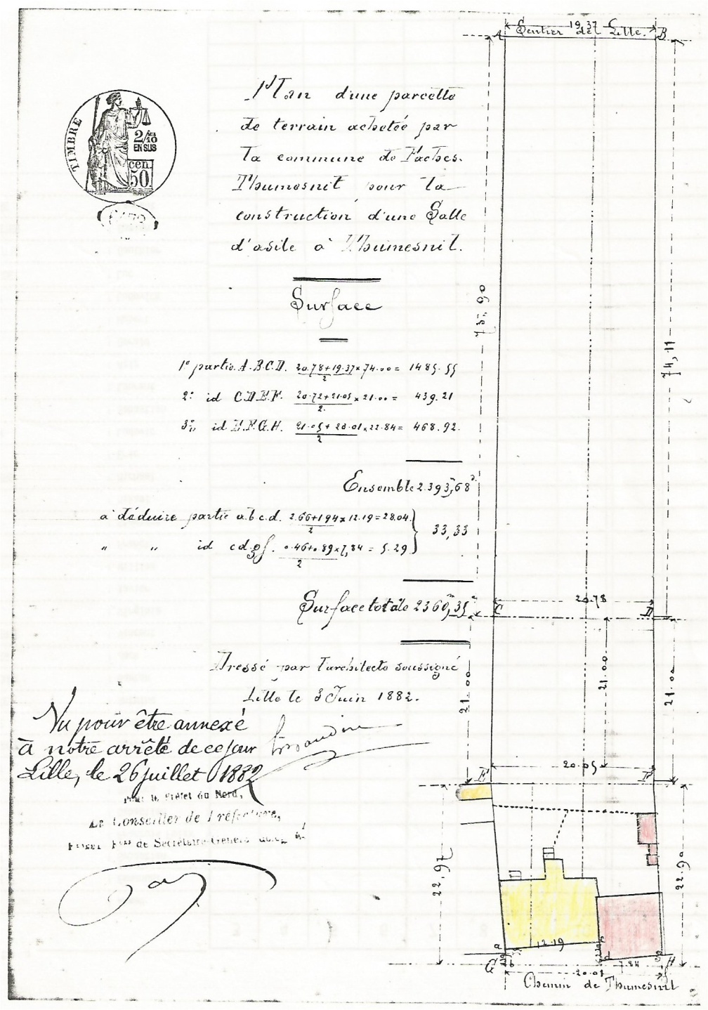 En 1882, un projet de construction d’une « salle d’asile » à Thumesnil vit le jour ( cf plan et procès verbal) un terrain de 2360 m2 fut acheté pour 18300 F.