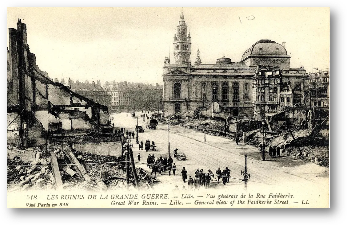 Il y a deux nuits, 5 ou 6 bombes sont tombées sur le quartier St. Sauveur, 1 ou 2 sur la Gare, rue Danton, rue Kléber et rue de Douai. Les Anglais tiraient de Prémesques sur la route d’Armentières.