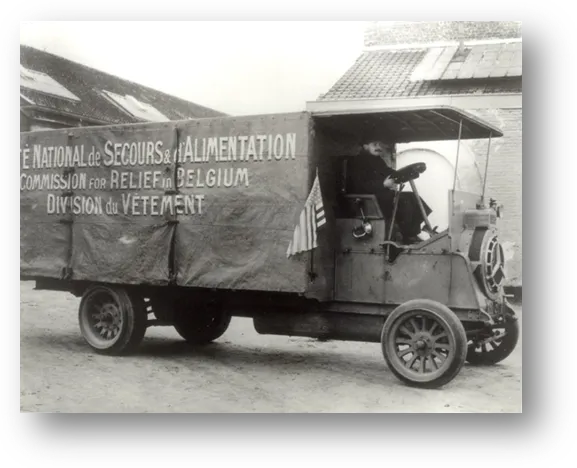 Le 22 octobre 1914, à l’instigation de l’industriel belge Ernest Solvay, Brand Whitlock, ambassadeur des Etats-Unis à Bruxelles, le Marquis de Villalobar, premier ambassadeur d’Espagne en Belgique, des diplomates hollandais et Herbert Hoover fondent la Commission d’aide à la Belgique, le CRB (Commission for Relief in Belgium). Ce comité s’occupait de la recherche et de l’achat de nourriture et organisait aussi le transport. Il était sous le patronage des ambassadeurs des Etats-Unis et de l’Espagne. C’est pourquoi il est mieux connu sous le nom de Comité hispano-américain. Herbert Hoover, qui sera élu président des Etats-Unis en 1928, met en place la plus grande organisation humanitaire de tous les temps. Le siège social est à Londres. Les produits proviennent soit de dons soit d’achats dans des pays neutres, comme l’Argentine.