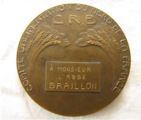Médaille en bronze, commémorative du Comité d'alimentation du Nord de la France - C.R.B. 1914 - 1918.
