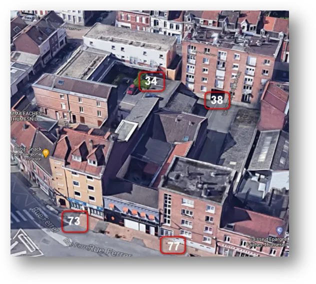 Ces différentes adresses pour une "même" entreprise, correspondent finalement à un même ensemble immobilier situé entre les rues Ferrer et Pasteur avec des cours intérieures communes