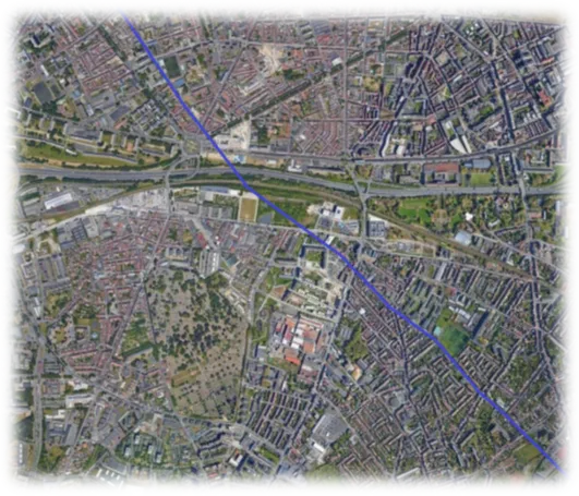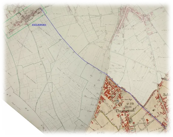 C'est alors qu'un élément interpelle vis-à-vis du chemin d'Esquermes : si on trace une droite prolongeant ledit chemin en coupant à travers la RN 17, puis les parcelles situées à l'ouest de la RN, il se trouve que nous retombons sur...